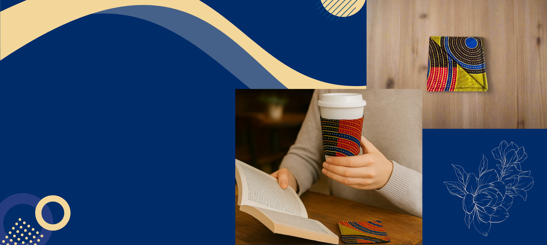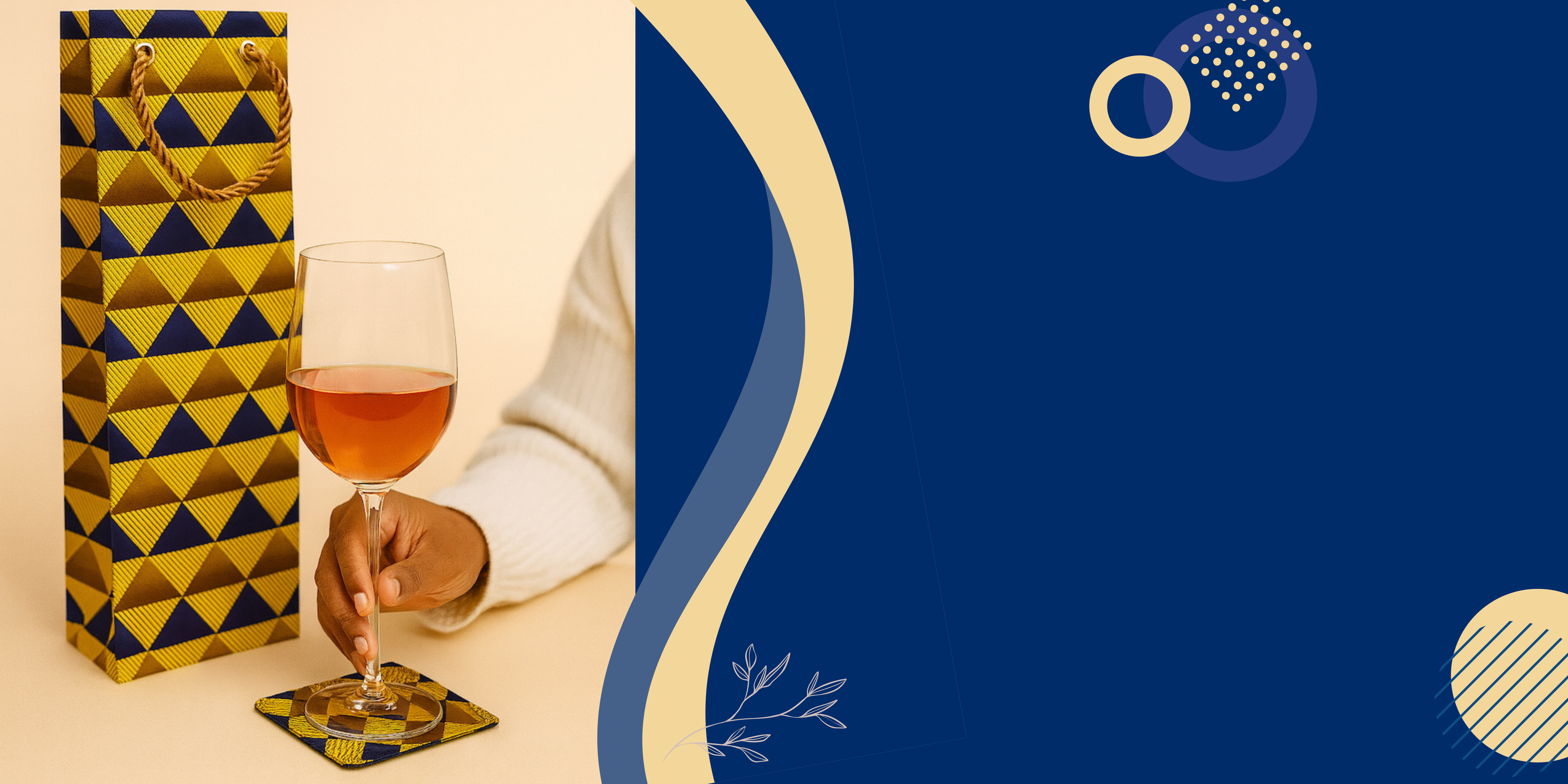 Handcrafted wine bags, coaster sets, gift bags and more made with vibrant African wax prints.